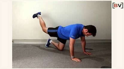 Póngase a gatas, con las manos y las rodillas apoyadas en el suelo, las piernas separadas y la espalda recta. Una vez en esta posición, eleve una pierna hasta dibujar una línea recta con la espalda. Haga doce repeticiones con la misma pierna antes de pasar a la otra. Repita la serie tres veces con cada pierna.