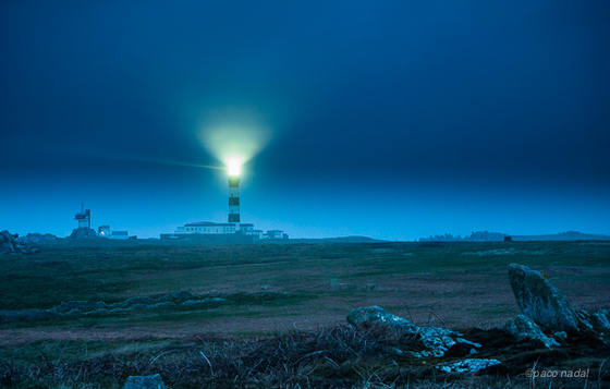 El faro más emblemático de Ouessant es también el más potente de toda Europa y el segundo del mundo. Su luz se ve a 55 kilómetros de distancia, es decir, desde mitad del canal de La Mancha, que para eso fue construido: para señalizar la entrada al canal que separa Gran Bretaña del continente. Por la noche es todo un espectáculo ver su haz barriendo la oscura soledad de la isla de Ouessant como aspas de un molino de luz gigantesco. Se puede leer un libro cuando la luz pasa sobre tu cabeza. Levanta 71 metros desde el mar y tiene dos grupos de linternas que emiten destellos cada 10 segundos.