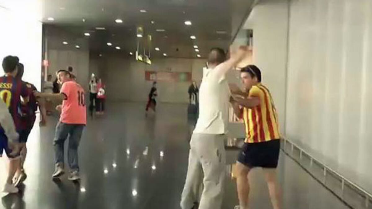 El grupo de madridistas, que se había desplazado a la capital catalana para el partido de su equipo contra el Espanyol, profería gritos contra el Barça en el aeropuerto cuando se produjo el enfrentamiento