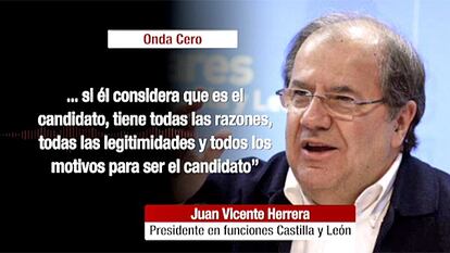 Las declaraciones de Juan Vicente Herrera son hasta ahora las más duras. "Mírate al espejo y respóndete a ti mismo si tienes todas las razones, todas las legitimidades y todos los motivos para ser el candidato", ha dicho el presidente de Castilla y León refiriéndose a Mariano Rajoy al que, por otra parte, elogia como una buena persona.
