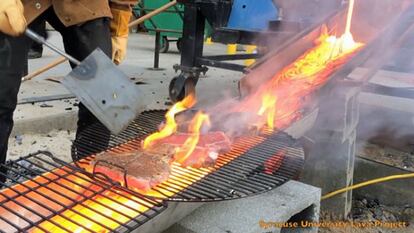 Un grupo de estudiantes de la Universidad de Siracusa (Nueva York, EE UU) graba su experimento de cocinar unos filetes utilizando como única fuente de calor la materia incandescente
