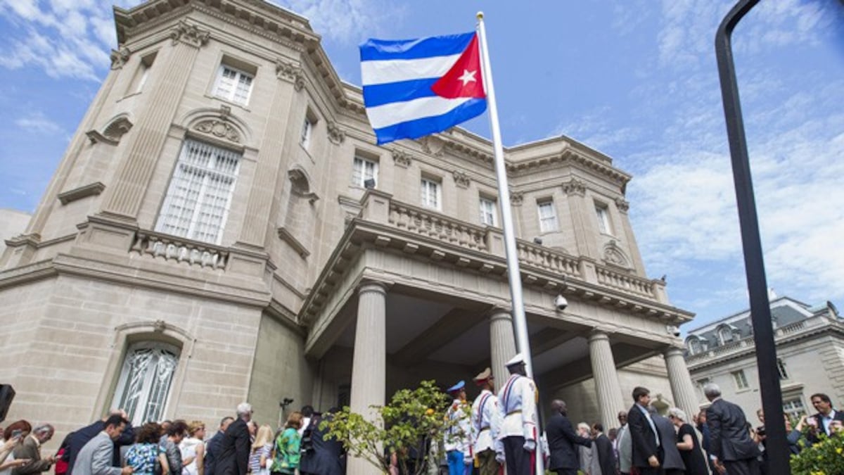 La bandera de Cuba ondea 54 años después en su embajada de EE UU. Cuba ha desplegado todo su protocolo para celebrar la reapertura de su embajada en Washington tras más de medio siglo de ruptura diplomática con EE UU, que desde la medianoche también cuenta con una embajada en La Habana. Han tenido que pasar 54 años para que la bandera cubana vuelva a ondear en la legación diplomática y La Habana ha querido reconocer este hito enviando a su canciller, Bruno Rodríguez, a presidir la ceremonia. Este viaje constituye, en sí, otro momento histórico: es el primer ministro de exteriores cubano que visita Washington desde 1959.