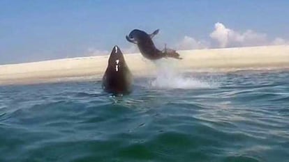 Unos científicos captan unas imágenes insólitas: un ataque de escualo saltando fuera del agua