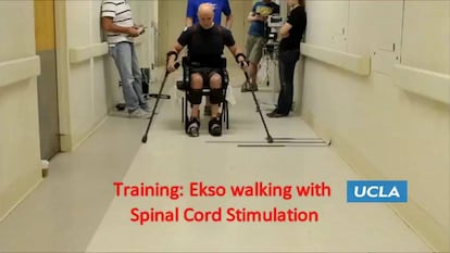 Un exoesqueleto conectado a la columna permite andar a un paralítico