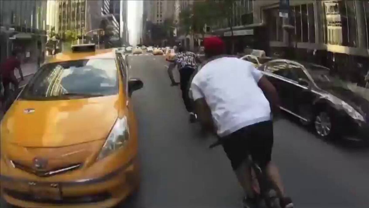 Del puente de Brooklyn a Central Park atravesando la concurrida Times Square. Un joven ciclista norteamericano ha grabado con una cámara deportiva instalada en su casco su recorrido por Nueva York. Sorteando los obstáculos que se le iban presentando por las calles de la ciudad estadounidense, ha terminado su recorrido montándose en un helicóptero.