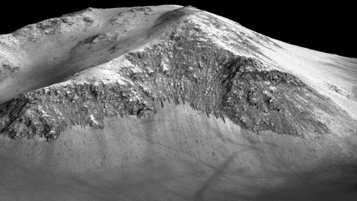 as imágenes aéreas tomadas de Marte se parecen mucho a las de la Tierra. Uno de los accidentes más interesantes son unas estrías en el terreno que se precipitan colina abajo y que intuitivamente parecen cauces de agua. Estos cursos aparecen y desaparecen del terreno, lo que refuerza la idea de que sea el agua estacional la que los forme. Pero de la intuición a la realidad hay un enorme paso y hasta el momento no se ha podido demostrar que esas grietas se deban realmente al agua líquida, cuya existencia sería clave para la posibilidad de que haya vida en el planeta rojo.