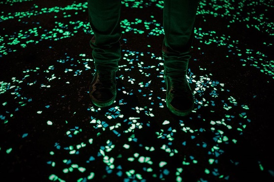 Este proyecto consiste en una novedosa capa de asfalto, en la que se han incrustado miles de piedras luminiscentes distribuidas de manera espiral, así como también luces LED alimentadas por energía solar. Una tecnología innovadora que permite que éstas se carguen durante el día y emitan luz a medida que va oscureciendo, salpicando luz y color simulando un cielo repleto de estrellas.