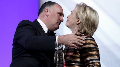 Hillary Clinton es una admiradora declarada del chef estrella español José Andrés, y no solo por sus platos y las margaritas que sirve en su cadena de afamados restaurantes en Estados Unidos. Así lo recordó una vez más la candidata presidencial demócrata al hacer entrega, la noche del jueves, de un reconocido galardón de la comunidad latina de EE UU al “cocinero español” que quiso formar parte del “sueño americano” y que acabó defendiendo el derecho de los hispanos a compartir esos sueños.