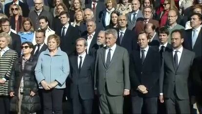 Los trabajadores de EL PAÍS también se han sumado a la oleada de concentraciones que han guardado un minuto de silencio en la mañana de este lunes en la entrada de la sede del diario en Madrid.