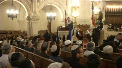 La Gran Sinagoga de París se ha sumado a los actos de condolencia a las víctimas de los ataques de París. El Gran Rabino incluso ha entonado el himno de La Marsellesa.