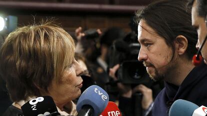 Celia Villalobos, vicepresidenta de la cámara, y Pablo Iglesias, candidato de Podemos a la presidencia del Gobierno, mantuvieron una tensa conversación el pasado jueves ante los medios de comunicación.