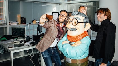 Pero si hay una campaña que año tras año genera símbolos es la de la Lotería. El de este año es Justino, un guardia de seguridad animado cuyo muñeco, a tamaño real, espera en la recepción de la agencia Leo Burnett, encargada por segundo año consecutivo de esta campaña. Mirada al frente. Sonrisa cándida. Nada tiene que hacer para atraer los objetivos sobre su cuerpo de poliespan. Todo el que le ve quiere una foto suya. Le ponen la mano en el hombro, le tocan sus gafas redondas, le acribillan a posados, a selfies “como en el anuncio”. Justino se deja hacer. Tampoco podría moverse aunque quisiera. Tiene solo dos semanas de vida y ya es un símbolo, porque con él quedó inaugurada la Navidad a mediados de noviembre.