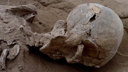 El estudio de los cadáveres ha requerido la participación de un equipo multidisciplinar y su trabajo parece un relato policíaco. Por ejemplo, el caso de los dos muertos sin marcas de violencia, que probablemente fallecieron atados. Uno de ellos es la mujer encinta, hallada en una postura que indica que fue agonizó con las muñecas y tobillos inmovilizados. “Solo podemos ver las marcas que quedan en los huesos así que no sabemos si les cortaron el cuello, estos son los únicos que no tienen traumatismos, pero ambos están con las manos juntas, lo que parece una gran casualidad”, explica Maíllo.