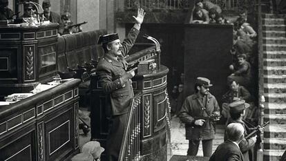 El lunes 23 de febrero de 1981, Daniel Gavela libraba. El por entonces adjunto al jefe de la sección de Nacional de EL PAÍS tenía una cita a las 18.30 en la plaza de las Cortes, pero al llegar se encontró la zona acordonada. Se percató de que algo grave estaba pasando, llamó a la redacción, subió a un taxi y puso rumbo al periódico. Desde ese asiento, empezó a vislumbrar algunas luces en medio de tanta sombra. En Radio Nacional, la emisora que llevaba el vehículo, empezaron a sonar marchas militares. “Fue como un regreso al túnel negro de la historia”, recuerda hoy. Siete minutos antes, a las 18.23, el teniente coronel Antonio Tejero había entrado al Congreso de los Diputados con el arma en alto e interrumpiendo a golpes un pleno para la votación de investidura de Leopoldo Calvo-Sotelo como nuevo presidente del Gobierno. En ese mismo momento, Juan Luis Cebrián (hoy presidente ejecutivo del Grupo PRISA y entonces director de EL PAÍS) mantenía una entrevista en su despacho con un aspirante a redactor en el periódico. El “¡quieto todo el mundo!” de Tejero antes de apuntar con su arma al techo del hemiciclo se escuchó entonces en la radio y revolvió las tripas a los que habían estado prestando atención a una rutinaria retransmisión. Uno de aquellos espectadores era Augusto Delkáder, subdirector del diario en 1981, que inmediatamente interrumpió la cita del director para pedirle que subiera el volumen del transistor. “Juan Luis, Juan Luis, sube la radio”, le espetó. Cebrián y Delkáder, como los demás oyentes, no vieron entonces cómo los diputados escondían sus nucas debajo de la mesa, ni las agallas de Manuel Gutiérrez Mellado, el general que le plantó cara a los golpistas con una frialdad que aún pone los pelos de punta. Sí taladró sus oídos la ráfaga de disparos de Tejero.