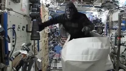 "Se necesita un poco de humor para hacer más leve un año en el espacio", ha dicho Scott Kelly. El astronauta de la NASA, con una misión de larga estancia en la Estación Espacial Internacional para estudiar los efectos que tiene sobre el cuerpo humano, ha celebrado su aniversario con un vídeo en su cuenta de Twitter en el que se disfraza de gorila. Kelly recibió el disfraz de regalo de parte de su hermano gemelo, Mark, quien permanece en la Tierra como parte de la misión ya que consiste en comparar a ambos. El astroanuta ha sido protagonista de varios vídeos desde la estación en los que aparece realizando diferentes actividades como jugar pimpón. En realidad son sus últimos días si todo va bien, porque el regreso de Kelly está planeado para marzo de este año.