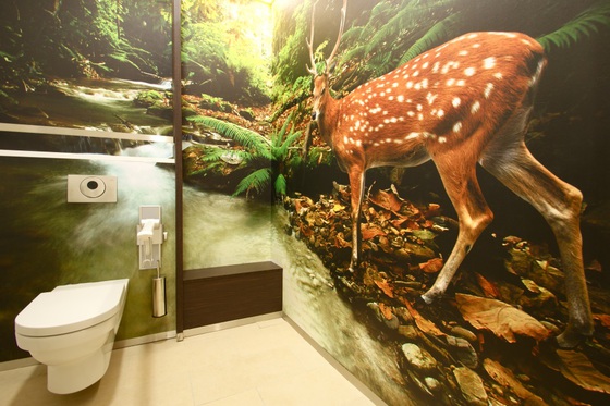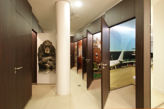 Las cabinas, completamente cerradas y con sistema de ventilacion, están decoradas con sorprendentes fotografías a modo de trampantojos.