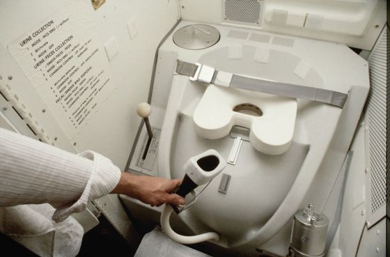 Y por último, pero no por ello menos importante: ¿cómo hacen caca los astronautas? Al principio de la carrera espacial, los astronautas (o los cosmonautas si eran rusos) tenían que llevar bolsas de dodotis a bordo para contener las deposiciones. Tras arduas investigaciones y después de observar a la señora de la limpieza, los ingenieros de la NASA descubrieron cómo evitar que la estación espacial se llenase de bolitas de mierda flotando por todas partes (por la falta de gravedad): haciendo pis y caca en el tubo de una aspiradora. Los residuos van a parar a bolsas plásticas que luego son compactadas y selladas. En la foto de abajo, la primera versión de la NASA de un toilet para la gravedad cero.