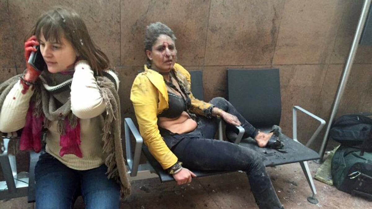 Estas son las primeras imágenes tras las dos explosiones registradas en el aeropuerto de Zaventem, a unos 11 kilómetros de Bruselas, Bélgica. Han causado hoy al menos un muerto y numerosos heridos y ha obligado a evacuarlo, según informa el diario belga HLN en su edición digital. Fuentes de belgocontrol, el organismo que regula la navegación aérea civil en Bélgica y Luxemburgo, informaron de que el aeropuerto ha sido cerrado y la mayoría de los vuelos fueron desviados a otros aeródromos de la región.