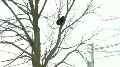 La aventura de un bebé oso de 90 kilos acabó en lo alto de un árbol de Cortland (Nueva York, Estados Unidos). Tras pasearse por las calles del municipio, de 20.000 habitantes, varios vecinos alertaron de que se disponía a trepar por un árbol. La policía decidió dispararle un calmante que hizo que el animal se desplomara hasta quedar colgado de algunas ramas y, finalmente, descender al suelo. El oso, que se encuentra en buen estado pese a la caída, está siendo atendido en el hospital de la Universidad de Cornell.