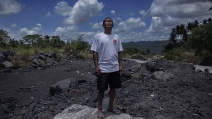 “Ella siempre venía con café, nos fuimos conociendo y al poco tiempo decidimos vivir juntos”, cuenta Lama junto a la casa donde ahora vive con su actual esposa, los dos hijos que han tenido juntos y los cuatro de su anterior matrimonio. Reside a solo unos cientos de metros del lugar donde perdió a su primera mujer, un bonito paraje agrícola, rodeado de gallinas y con el volcán presidiendo la escena. Aunque es otra amenaza para su vida, no lo teme. “La leyenda dice que cada nueve años el Mayón celebra su cumpleaños expulsando lava”, sonríe. Pese a que estas erupciones han causado grandes catástrofes en la zona, lo que realmente le preocupan son los tifones, aunque no le han echado de su tierra. “Hay quien se va a Manila, pero ¿qué haces con tus hijos? ¿en qué condiciones se crían?”, reflexiona este agricultor que también se gana la vida como albañil. A pesar de todo, incluso de una tragedia personal como la que vivió, confía en los sistemas de evacuación: “Cuando se acercan las tormentas, los capitanes de barangay [algo así como alcaldes de distrito] nos avisan y comenzamos el desalojo. Lo primero que viene a mi mente es avisar a mi familia y recoger todo rápido, no tratar de salvar los objetos personales. Esto es lo nos que sucedió en 2006; si hubiéramos tardado menos en desalojar quizás [su primera esposa] seguiría viva”.