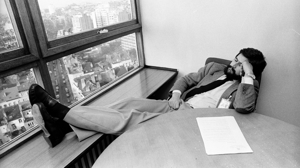 Aunque las negociaciones para el ingreso de España finalizaron formalmente el 29 de marzo de 1985, todavía quedaba una larga ristra de asuntos pendientes que no se cerraron hasta el 6 de junio de ese año. Aquellas agotadoras jornadas ofrecieron la fotografía que presenta a Manuel Marín echando una cabezada entre ronda y ronda negociadora. La estampa, un icono de la tenacidad de la actitud española, vino a dar la razón a la entonces ministra francesa Édith Cresson, quien sostenía que las negociaciones maratonianas prolongadas hasta altas horas de la noche beneficiaban a la delegación española. “Éramos muy jóvenes y aguantábamos bien las largas jornadas de tira y afloja. Lo primero que descubrimos era lo difícil que resultaba tener una visión global. Teníamos especialistas en casi todas las áreas, pero trabajábamos con precariedad porque no existía el Instituto Nacional de Estadística (INE), no había datos oficiales”, recuerda Marín.