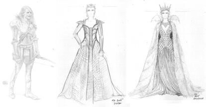 "No quieren que hable de Tim”, dice Colleen Atwood (Washington, 1948) obviamente hablando de su amigo y continuo colaborador, el director Tim Burton. La diseñadora de vestuario tres veces ganadora del Oscar y con 11 candidaturas a esta estatuilla no va a poder evitarlo. Habla rodeada de algunos de sus mejores trabajos, en una exposición que es un despliegue de sus diseños para Las crónicas de Blancanieves: El cazador y la reina del hielo. “Este traje de oro que diseñé para Charlize Theron es uno de los preferidos de mi carrera”, asegura señalando un vestido tan majestuoso como brillante que lo dice todo sobre el personaje de la Reina Ravenna. Atwood las ha vestido a todas y a todos. “También a Antonio y Penélope”, recuerda de su trabajo en Philadelfia (1993) y Nine (2009) con Banderas y con Cruz, respectivamente. “Y estaría bien tomarle medidas al marido de Penélope”, añade con picardía esta leyenda del vestir en Hollywood en referencia a Javier Bardem. Es ambiciosa y no esconde sus metas. También le gustaría trabajar con Pedro Almodóvar y empaparse de la moda isabelina. “Me encantaría hacer algo sobre el siglo XV español. Un gran periodo y un estilo que nunca he tocado”, confiesa dejándose llevar por sus sueños.