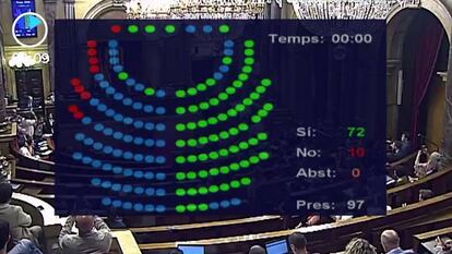 El Parlament desobedece al Constitucional y aprueba la vía unilateral para la desconexión de Cataluña Junts pel Sí y la CUP han utilizado su mayoría absoluta para que el Parlament apruebe las conclusiones de la comisión de estudio del proceso constituyente. La cámara catalana, con el rechazo del conjunto de la oposición, consuma así su desafío al Tribunal Constitucional.