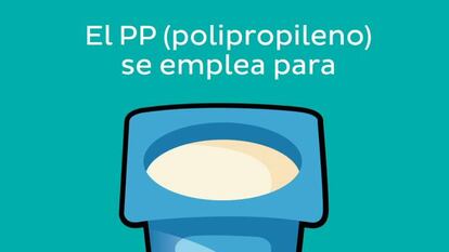 En el contenedor amarillo de su calle se depositan, además de envases ligeros de aluminio (como las latas de conserva) y tetrabrik, plásticos de varias clases. Cada uno tiene una composición química diferente que lo hace adecuado para ser un determinado recipiente. El PET (tereftalato de polietileno) se suele usar para las botellas de agua y refrescos; el PEAD (polietileno de alta densidad, más resistente que el anterior) se emplea en envases de productos de limpieza o detergentes; el PVC (cloruro de polivinilo) se demanda para los blíster de los aparatos electrónicos; las bandejas de plástico de frutas y verduras, y las transparentes de comida para llevar, son de PS (poliestireno); el papel film es conocido como LDPE (polietileno de baja densidad) y el PP (polipropileno) es el más usado para los vasos de yogures, las tarrinas de margarina y los tapones de botellas, por ejemplo.