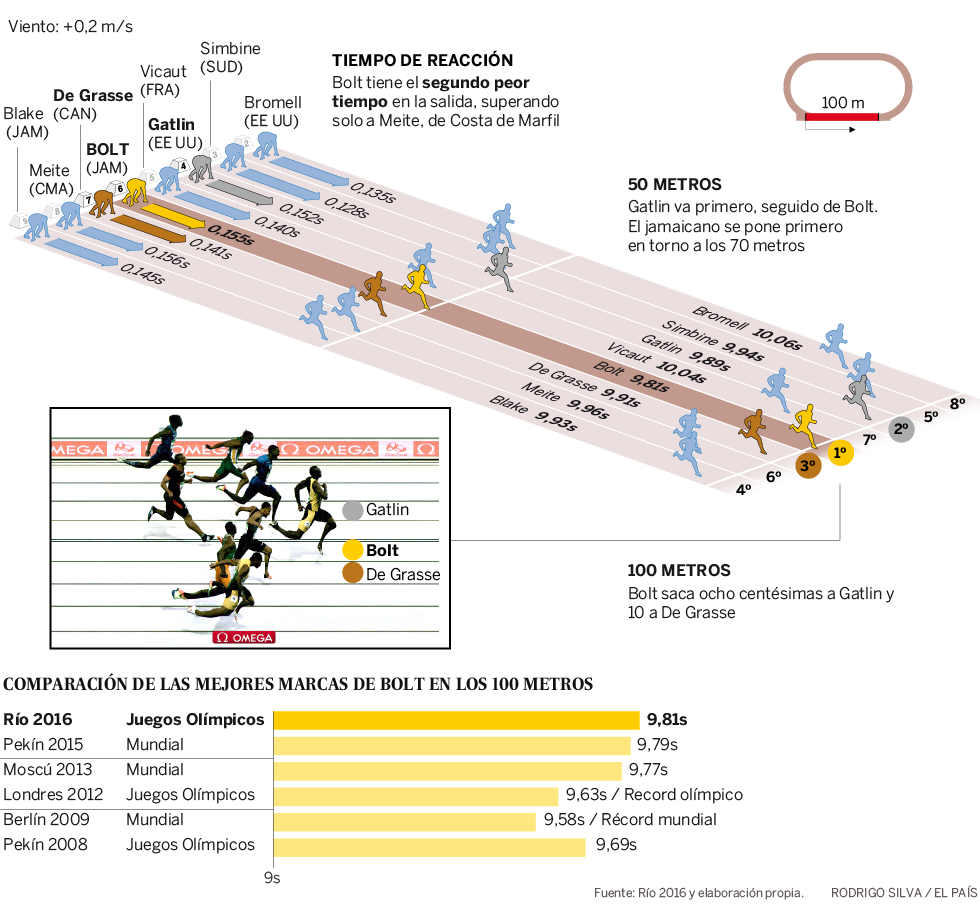 El atleta jamaicano, tras una mala salida, se impone al estadounidense Gatlin y al canadiense De Grasse