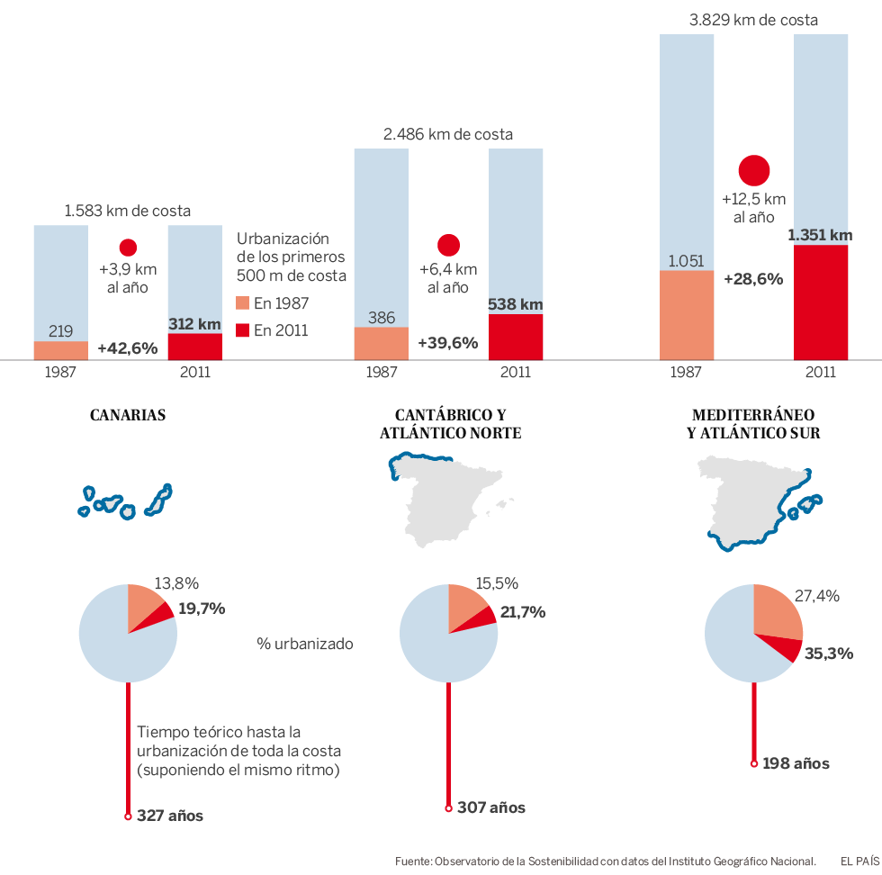 En los últimos años, los kilómetros de costa artificial han aumentado en un 33%