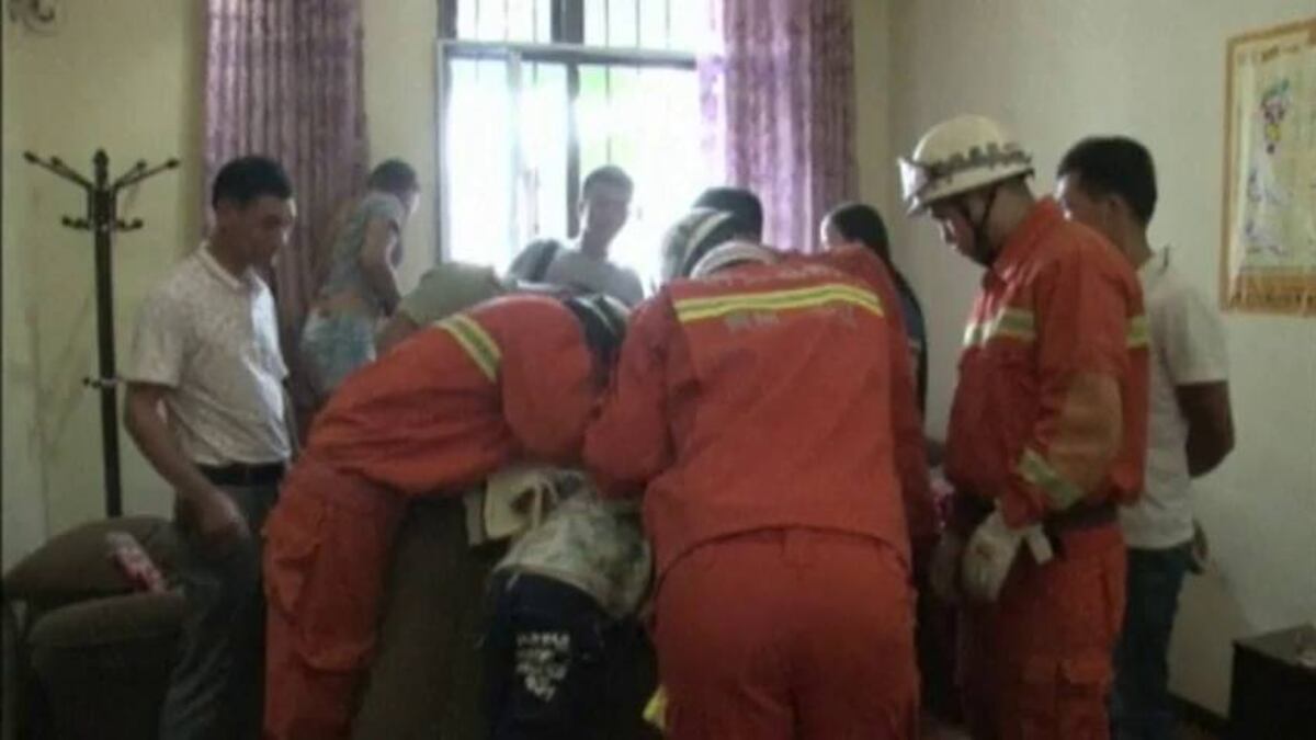 Mientras jugaba en una tienda de pedicura esperando a su madre, este niño quedó atrapado en un sofá. Sucedió en la ciudad china de Tongren. El pequeño estuvo varias horas inmovilizado mientras los bomberos trataban de desencajarle. Finalmente, tuvieron que cortar el mueble por encima de la cabeza del niño, que salió sin ningún rasguño, como si no hubiera pasado nada.