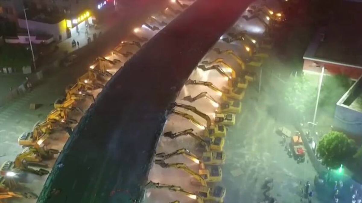 El pasado 29 de agosto, 116 excavadoras colocadas en fila derribaron un viaducto en la ciudad de Nanchang (China). Demoler el paso elevado con explosivos era inviable por la cercanía de otros edificios, puesto que la estructura de 24 años de antigüedad atravesaba el corazón de la ciudad. En un noche, los taladros de las máquinas consiguieron su objetivo para, así, poder proseguir con las obras del metro que está llevando a cabo la ciudad. El tráfico resultó afectado en gran medida, otro de los objetivos de las autoridades chinas, gracias a esta obra de ingeniería.