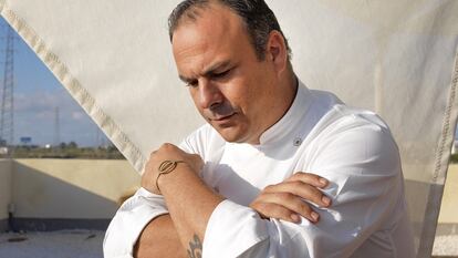 A NADIE EXTRAÑARÍA que a Ángel León (1977) le crecieran aletas y escamas. El chef del restaurante Aponiente (en el Puerto de Santa María, con dos estrellas Michelin) vive por y para una cocina que muestra el mar y enseña cómo apreciarlo y cuidarlo. Él, que ha sido marino, pescador, dice que aún tiene mucho que aprender de los océanos, pero todo lo que sabe supera con creces lo que cualquier profesional de la gastronomía puede hacer con la despensa marina. El prestigioso cocinero y empresario José Andrés le considera “un modelo para los cocineros del futuro por su investigación y su defensa de la sostenibilidad”.