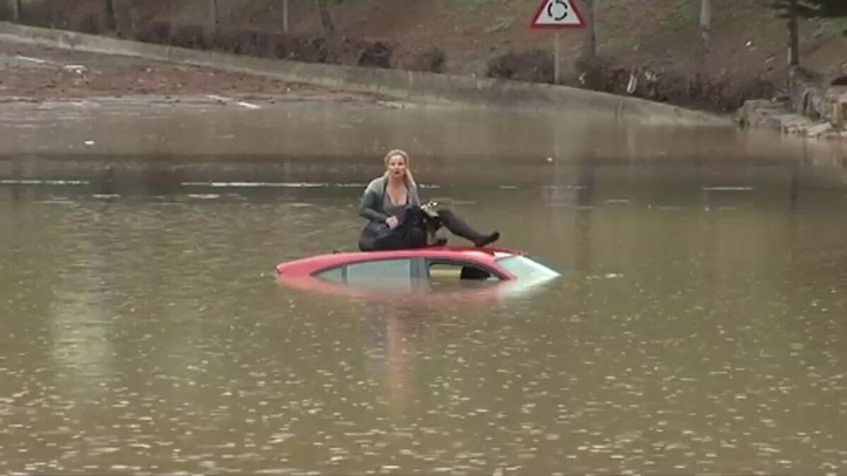 El turismo se hundió mientras la mujer abandonaba el coche por la ventanilla del copiloto. Consiguió rescatar sus pertenencias y subirse al techo mientras esperaba los servicios de rescate, que fueron avisados por periodistas que estaban en la zona. Fue precisamente una cámara de Mediaset la que captó los angustiosos momentos, hasta media hora tuvo que esperar Sari agazapada en el techo. El coche se ha hundió en apenas un minuto. La zona vivió este domingo las peores tormentas en los últimos diez años.