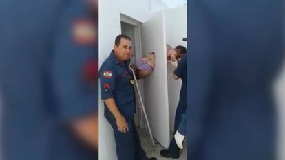 Un ladrón trató de escapar este martes de una comisaría de policía en Balneario de Piçarra (Brasil) por una ventana de 30 centímetros. La fuga falló cuando el fugitivo, de 40 años, se vio atrapado en el hueco, donde permaneció cerca de 30 minutos hasta que consiguieron sacarle. El hombre fue detenido horas después de robar en una joyería. Mientras esperaba en la comisaría para ser trasladado a la prisión de Canhanduba, en la ciudad de Itajaí, al sur de Brasil, intentó escapar quedando encajado. Tras embadurnarle de aceite para intentar que resbalara por la pequeña ventana, los bomberos consiguieron soltarle con ayuda de una herramienta hidráulica.