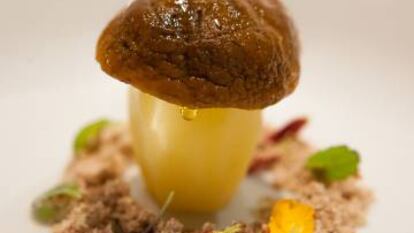 "Este menú se inspira en Alicia en el país de las maravillas", cuenta el chef Jean Paul Marat, último responsable de la veintena de estudiantes que cocina y sirve esta noche. En el aperitivo, a base de queso Gruyère, unos corazones rojo intenso —"elaborados con remolacha caramelizada", aclara el cocinero— hacen el primer guiño a la reina del cuento aficionada a cortar cabezas. Durante toda la velada aparecen esos gestos cómplices en los platos, donde los estudiantes maridan comida y tradición con literatura y fantasía.