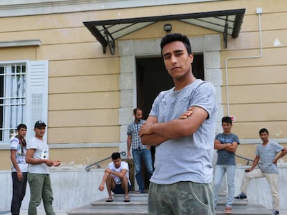 “Mi madre está enferma”, comenta su hijo Mustafa, de 38 años, mientras la mira. “¿Qué haría ella en un campo de refugiados al aire libre soportando malas condiciones?”. Fátima padece diabetes y hepatitis C. Guarda la insulina en el minibar de la habitación. Aquí puede ir al hospital y recibir los medicamentos de manera gratuita gracias al sistema de salud público griego. Salah, el otro hijo de Fátima, de 24 años, padece un problema nervioso que afecta sus capacidades físicas. Pasa las mañanas cuidando de su madre y paseándose por la cafetería, punto de reunión para huéspedes, voluntarios y activistas. Por las tardes asiste a sus clases de inglés impartidas en el último piso.