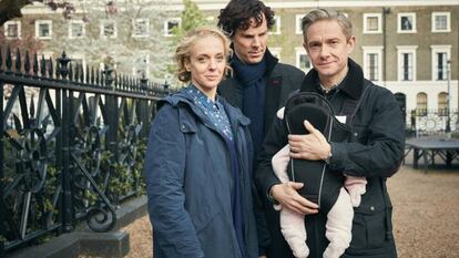 Los fans de ‘Sherlock’ se están acostumbrados a celebrar el Año Nuevo recibiendo regalos en forma de nuevos episodios. Desde hoy, 2 de enero, se podrán ver en Netflix los tres que conforman la cuarta temporada, de 90 minutos de duración cada uno. La serie que protagoniza Benedict Cumberbatch ya estrenó un episodio especial en el arranque de 2016, pero no presentaba una temporada completa desde enero de 2014.