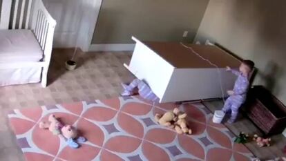 Un niño de dos años salva a su hermano de quedar atrapado bajo un armario