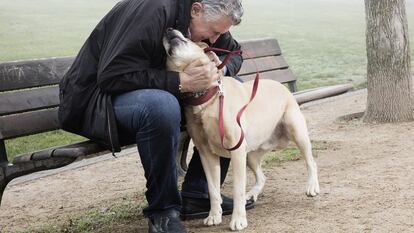 Romay ha tenido perros desde niño. A Hugo se lo regalaron hace siete años y reconoce que su talla le hace más difícil llevarlo a ciertos espacios públicos, como restaurantes o cafeterías, pero se ha convertido en su fiel compañero de caminatas. “Ahora solo paseamos, porque tengo mal las articulaciones y ya no podemos correr”, explica el exdeportista, de 57 años.