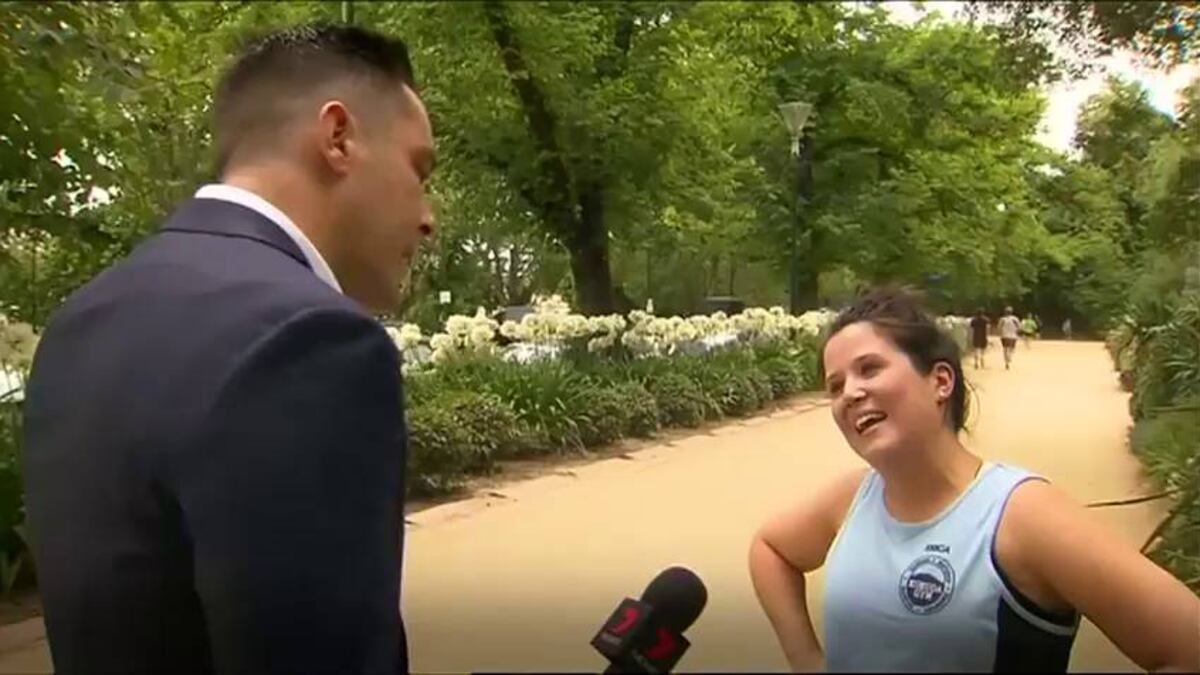 Esta joven australiana estaba corriendo por el parque cuando un reportero del canal 7 Live interrumpió su carrera para hacerle unas preguntas. Tras explicarle cómo dirigirse ante la cámara, el periodista le preguntó su nombre y su apellido. "Erica O'Donnell", señaló la mujer. "¿Podría deletrear el primero y el último?", le preguntó el reportero, a lo que Erica contestó demasiado al pie de la letra deletrando la palabras "primero" y "segundo". Ante la inesperada respuesta, el periodista comenzó a reirse junto con su entrevistada. "En una década nunca nadie me ha hecho esto", comentó.