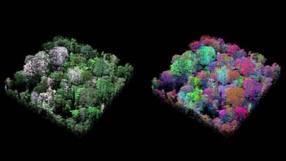 A bordo de un laboratorio aéreo, los investigadores han aplicado un algoritmo a las imágenes de su satélite para generar mapas de biodiversidad en los Andes peruanos y en la cuenca del río Amazonas y han hecho un mapa simultáneo de la composición funcional y biológica de la copa de los árboles. “Esto llevó al descubrimiento de 36 conjuntos forestales previamente desconocidos, y nos permitió evaluar las políticas de preservación", cuenta Asner.