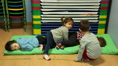 Las clases de las escuelas infantiles cuentan, de media, con de ocho a 12 alumnos, dependiendo del centro. Siempre, y según los expertos, hay niños más nerviosos que otros y que necesitan su tiempo para relajarse. "En clase, el mindfulness funciona muy bien con Marco", explica Núria, educadora del centro. "Primero, le explico que está nervioso, que le entiendo y que necesita pararse. Ahora, tras varias sesiones de entrenamiento, él se va a su rincón, en la colchoneta, y realiza los ejercicios o respira o se tumba o se pone a jugar...", continúa.