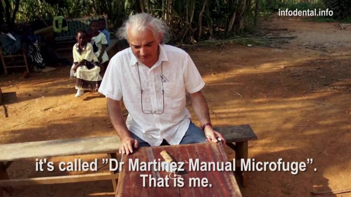 El mecanismo es muy sencillo, y se basa en el juego infantil del botón que gira cuando se separan los hilos que pasan por sus agujeros, que en algunos países de Sudamérica se llama runrún por el ruido que hacen. Martínez cuenta que se le ocurrió en África (aunque es dentista, también tiene la especialidad de Medicina tropical), y que pudo comprobar cómo esos giros generaban la suficiente fuerza centrífuga para separara las dos fases de la sangre, los glóbulos (más pesados, que se van al fondo del tubo) y el plasma, que se queda arriba y donde pueden encontrarse parásitos como el plasmodio de la malaria, lo que facilita el diagnóstico de la enfermedad.