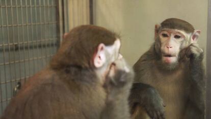 Un grupo de científicos chinos logra que los macacos aprendan a reconocerse en el espejo