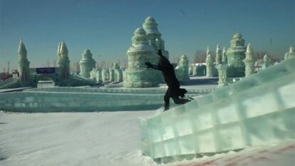 Los mismos saltos, derrapes y volteretas de siempre, pero sobre una superficie con muy poco agarre. Jason Paul es un conocido especialista del ‘free running’, una disciplina similar al parkour. Y acaba de exhibir sus acrobáticas habilidades sobre los bordillos de laCiudad de Hielo de Harbin, en China.