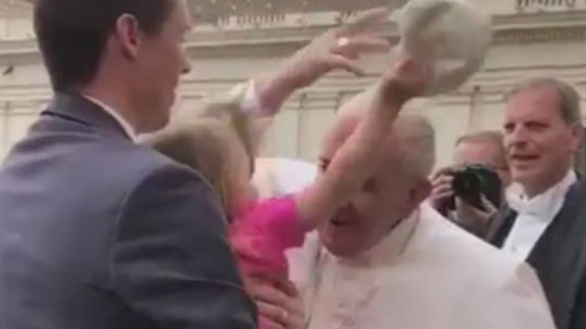Una niña de tres años sorprende a Francisco al quitarle el solideo papal