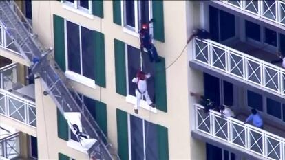 En Florida, Estados Unidos, los servicios de emergencia han salvado a un trabajador de mantenimiento que se quedó colgado entre la sexta y la octava planta del edificio. Los bomberos consiguieron acceder hasta él y descolgarle para trasladarle a un hospital, donde fue sometido a un reconocimiento médico. El sistema de seguridad al que estaba sujeto ha salvado su vida.