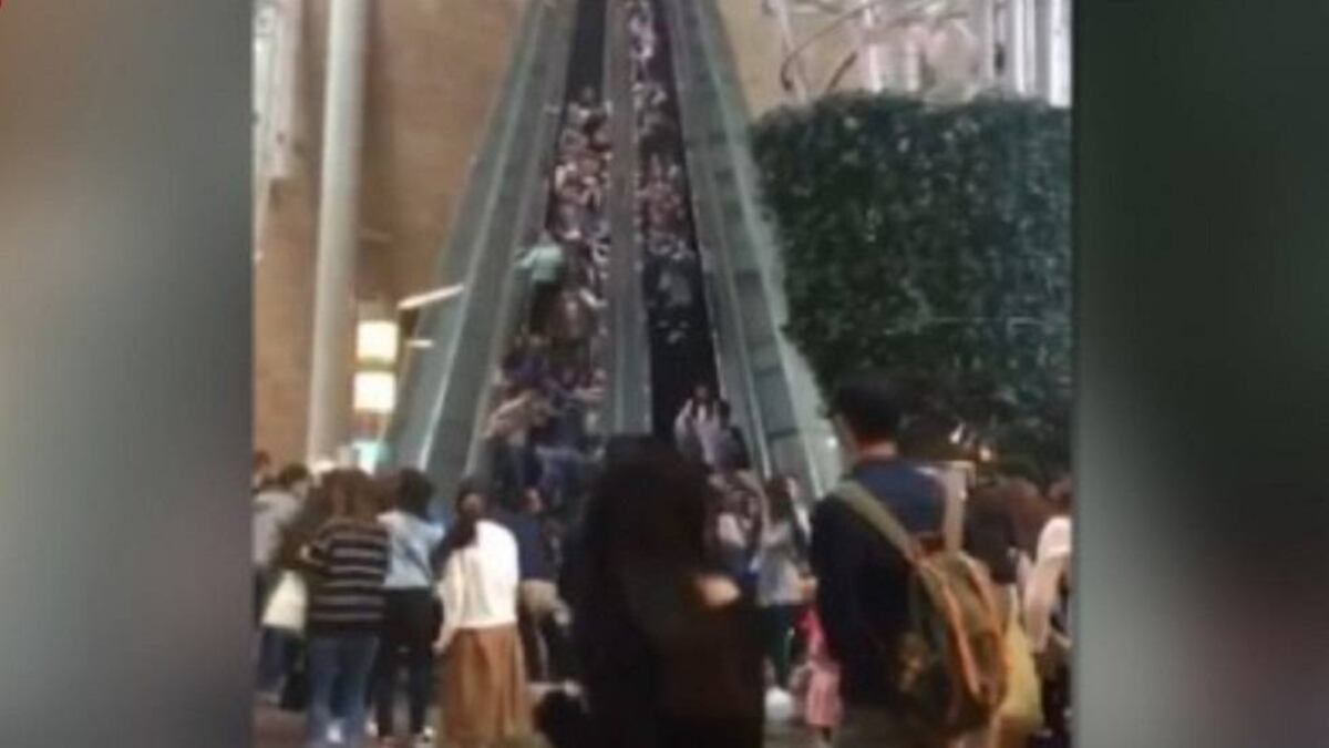 Momentos de pánico en una escalera mecánica en Hong Kong