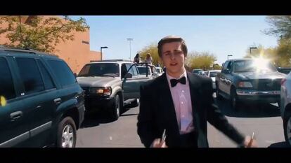 "Necesitaba una cita para el baile de promoción. Debería haberla conseguido antes, pero ahora cantaré una canción", comienza cantando Staudenmeier desde el asiento de su coche, aparentemente atrapado en un atasco de tráfico, al igual que comienza la película nominada a 14 premios Oscar.